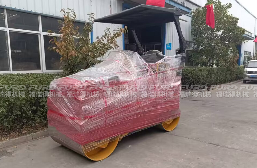 福瑞得機械一臺雙鋼輪座駕壓路機打包發(fā)往青島市